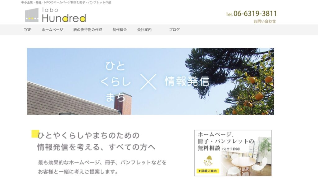 | 料金相場 | コーポレートサイト(8ページ+ブログ+メールフォーム):55万円~ |