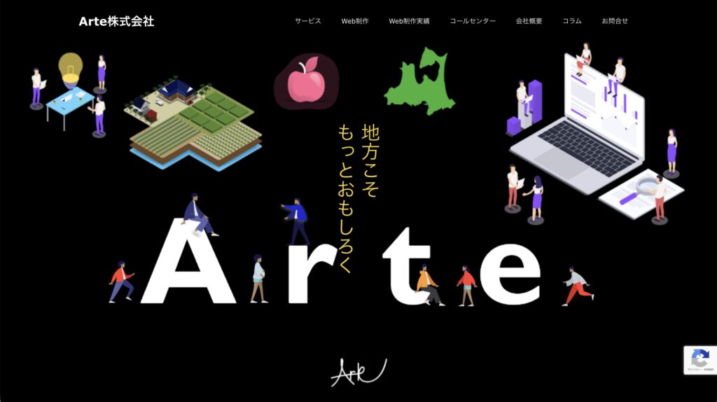 Arte(アルテ)株式会社は、青森で活動するホームページ制作、Web・SNS・Telマーケティング会社です。業種を問わないWeb戦略の支援、SNSマーケティング、店舗のキャッシュレス化、Wifi化等集客化、店舗のインフラコスト削減支援を得意としています。地域発の素晴らしい商品・サービス・人をサポートしています。