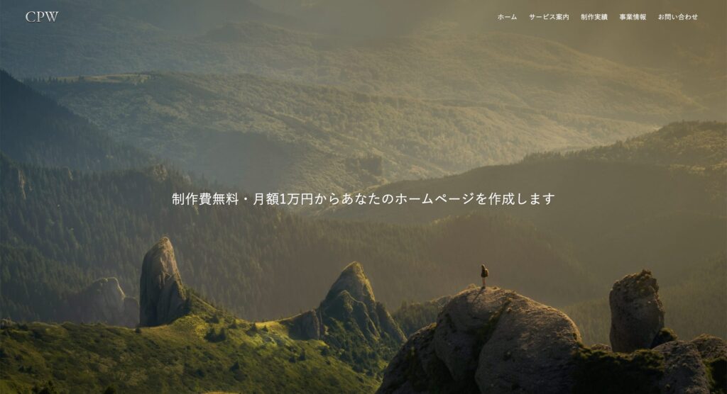 CPW | スタンダードプラン:月額1万円〜 プレミアムプラン :月額1万5000円〜 | ・制作費無料・月額1万円の格安ホームページ制作 ・Webサイトの運用・メンテナンスなど、手厚いアフターサポート ・契約期間・解約金がなく、安心して依頼できる | 初期費用を抑えてホームページを持ちたい方 |