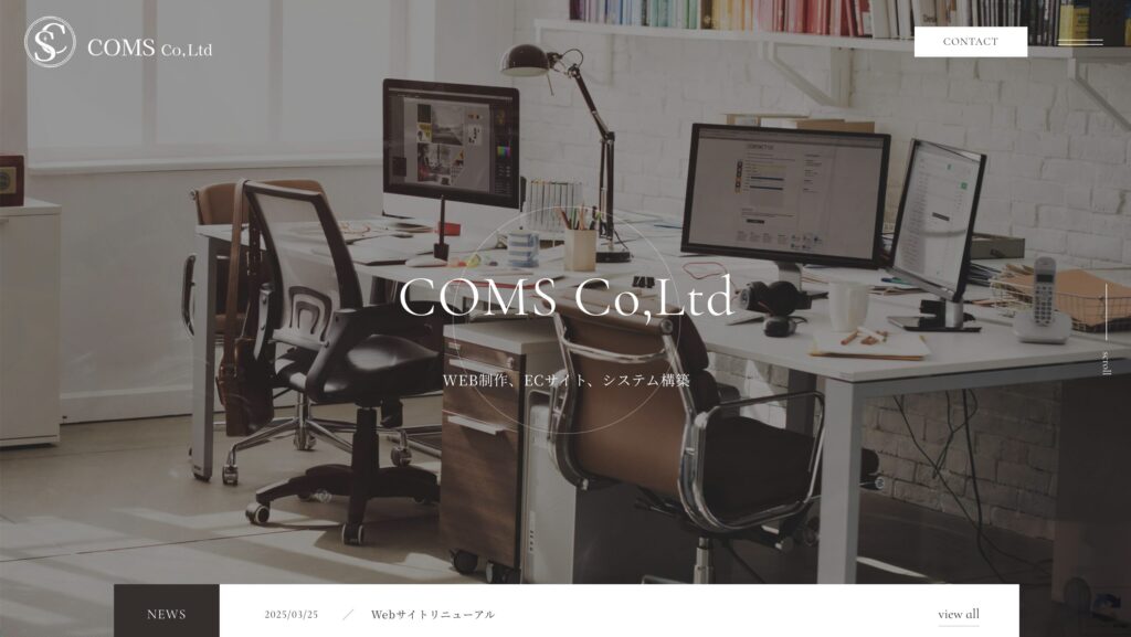 株式会社コムスは「中小企業の課題をWebで解決」する制作会社です。戦略設計からデザイン、SEO、広告運用、システム開発までをワンストップで対応し、成果につながるサイトづくりを実現しています。低コストのシンプルプランから本格的なオリジナル開発まで幅広く対応し、集客や売上に直結するWeb戦略をご提供し地域密着型のサービスではじめてのWeb担当者でも安心です。