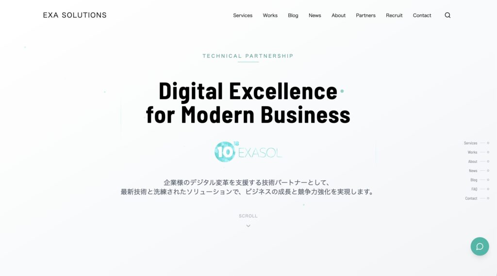 株式会社エクサソリューションズ | ・スタンダードプラン: 150万円〜 ・プレミアムプラン: 250万円〜 ・エンタープライズプラン: 個別見積もり | ・最新技術への先駆的取り組み ・確実な実行力と品質管理体制 ・パートナーシップ重視の柔軟な対応 | 最新技術を取り入れたWebサイトやサービスを求める方 |