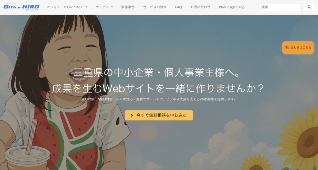 オフィス・ヒロは、Web制作・運用を中心に20年以上の実績を持つクリエイティブ事務所です。企業サイトから個人事業主のブランディングまで、目的に応じた高品質なホームページ制作を提供しています。デザイン性と機能性の両立を重視し、SEOや集客戦略にも精通。丁寧なヒアリングと提案で、クライアントの課題を的確に解決し、成果につなげるサポートを行っています。