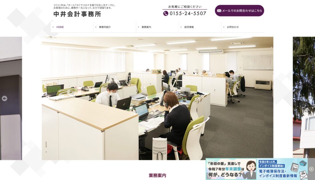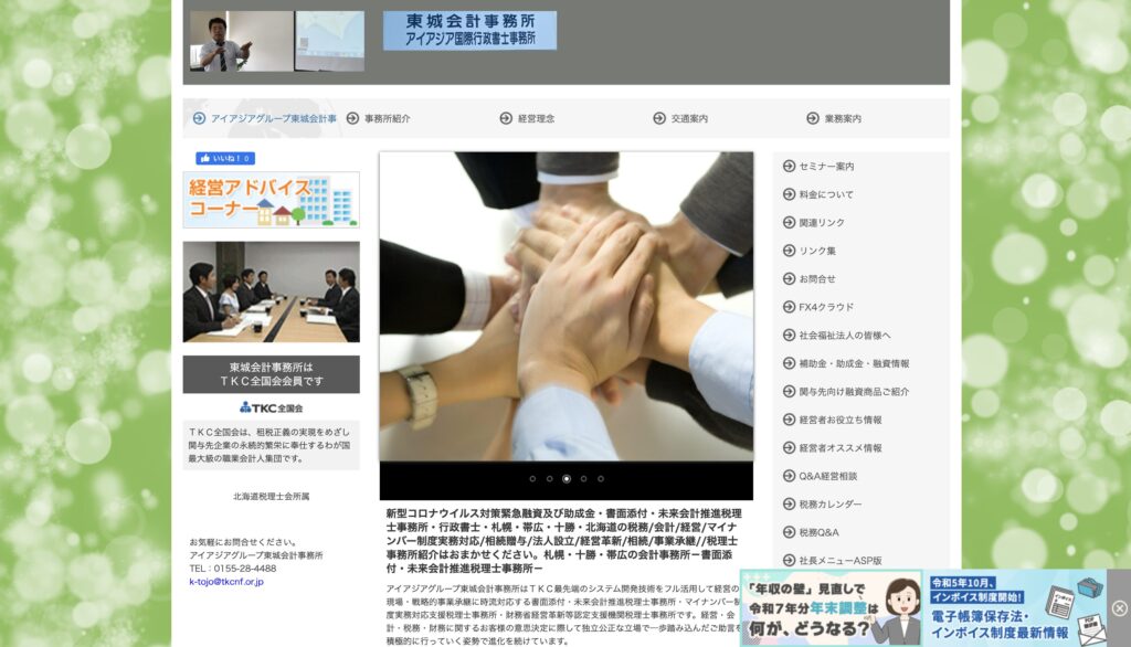 会計事務所のサイトにありがちなごちゃごちゃした印象を排除し、顧問先にわかりやすい説明を心がけています。