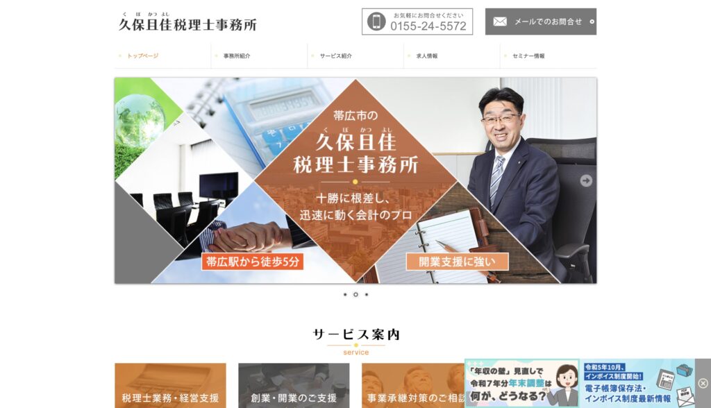 久保且佳税理士事務所は十勝および近隣地域で、創業・独立支援、税務・会計・決算、書面添付、自計化導入、経営計画、資産譲渡・贈与・相続、事業承継、税務調査立会いなどの幅広い業務を一貫支援。