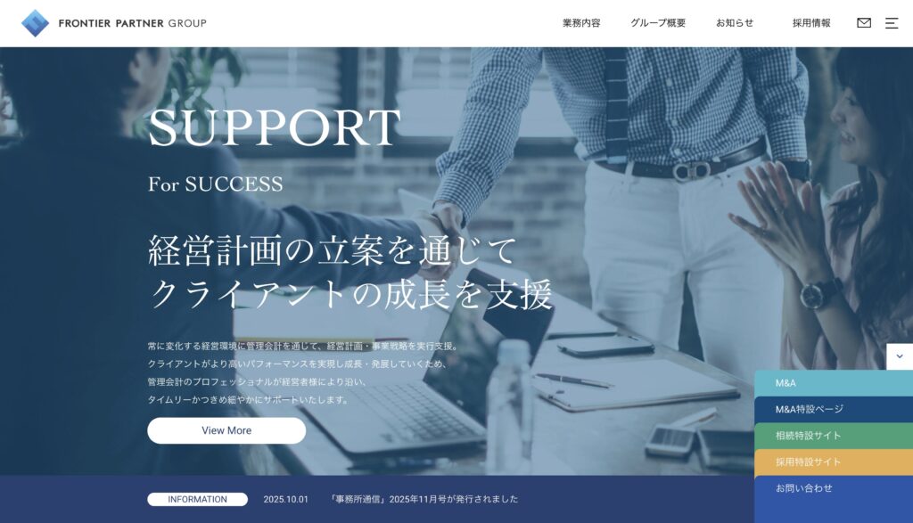 フロンティアパートナーグループは、公認会計士・税理士らによる専門家チームで、M&A支援、管理会計コンサルティング、企業再生、事業承継を総合的に提供しています。