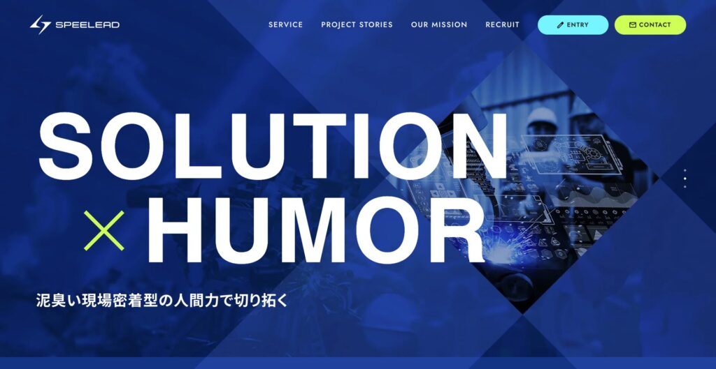 大手企業のスマホアプリ開発やWebシステム開発を手掛けており、泥臭い距離感で最先端を取り入れたオーダーメイドの企画提案を行います。スクロールした際のアニメーションが魅力的です。