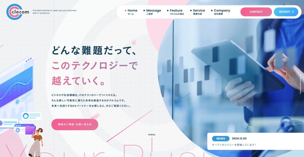 株式会社クルコムは「どんな難題だって、このテクノロジーで越えていく。」をコンセプトに、製造業のPLMパッケージ導入コンサルティングや官公庁の大規模システム開発に強みを持つIT企業です。
