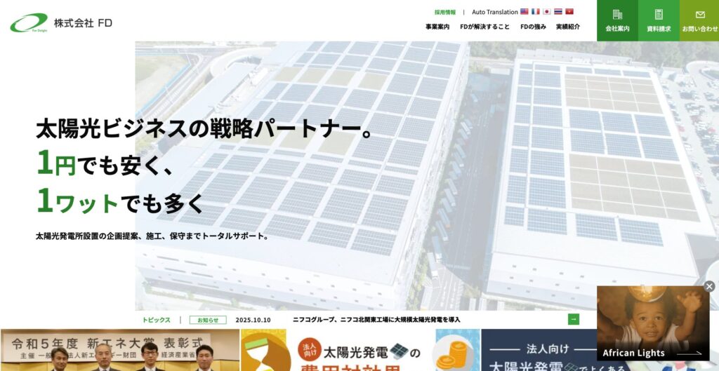 「1円でも安く、1ワットでも多く」をモットーに、太陽光ビジネスの戦略パートナーとして事業展開する企業です。