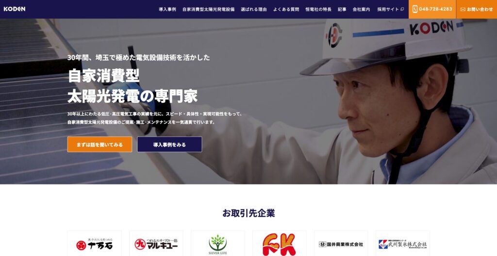 株式会社 恒電社は30年以上の電気設備工事の実績を活かし、自家消費型太陽光発電に特化した専門企業です。