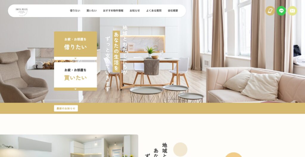 最新物件情報やお知らせもトップで確認でき、利用者は地域の不動産情報を直感的に把握できます。