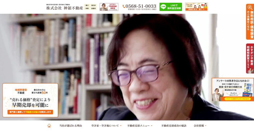 ホームページでは「春日井の方に愛され創業50年」というフレーズを大きく掲げ、地域に根差した信頼感をアピール。