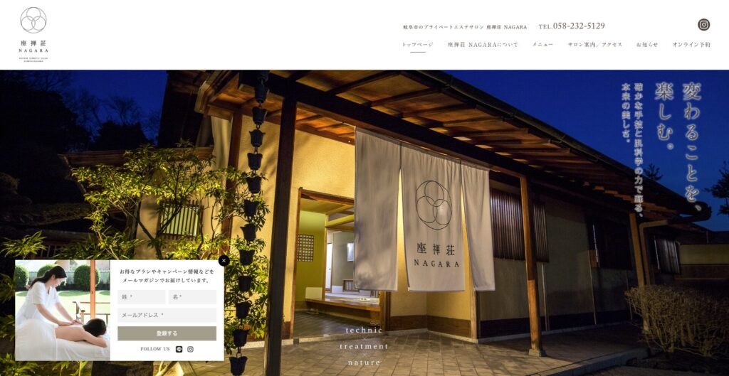 岐阜市郊外のプライベートエステサロン「座禅荘 NAGARA」は、エステサイトとしては異色の和風テイストが見所です。