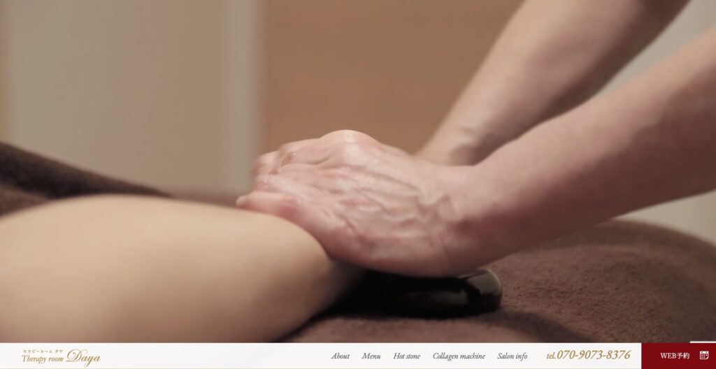 三重県津市のプライベートサロン「セラピールーム ダヤ」は、サイトを開いた瞬間に流れる施術中の動画が訪問者の目を奪います。