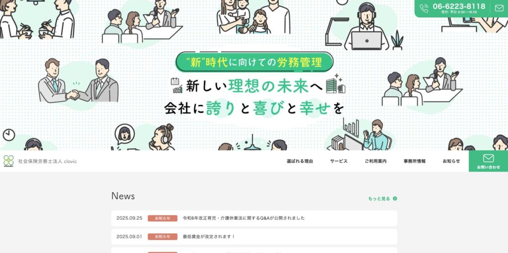 大阪・博労町の事務所で、労務関連のコラムを多数掲載しSEOにも強いサイトです。