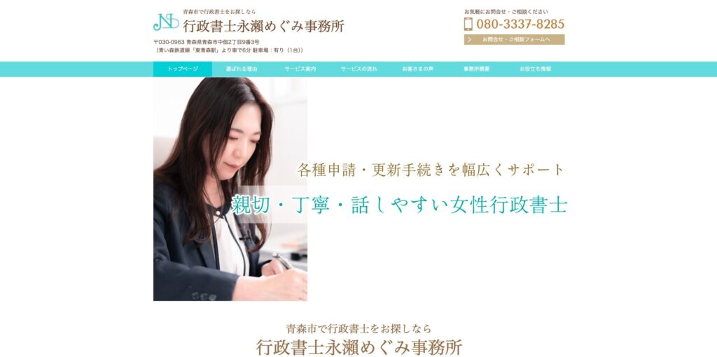 青森市のサイトで、女性行政書士・永瀬めぐみ氏による相続・許認可業務を紹介。