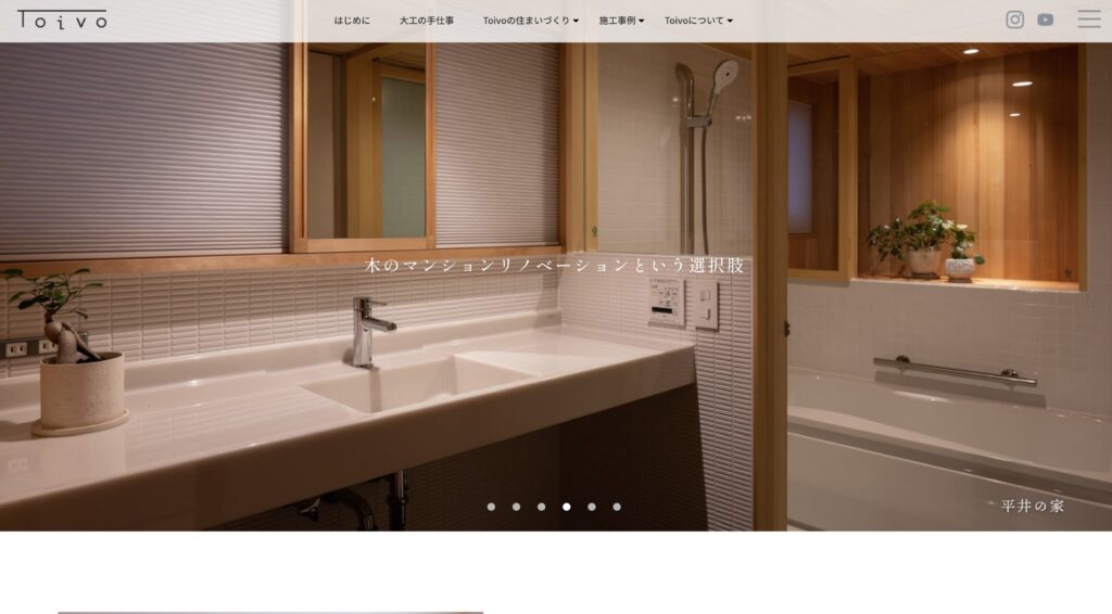 木のマンションリノベーションに特化し、こだわりと技術力を強調。