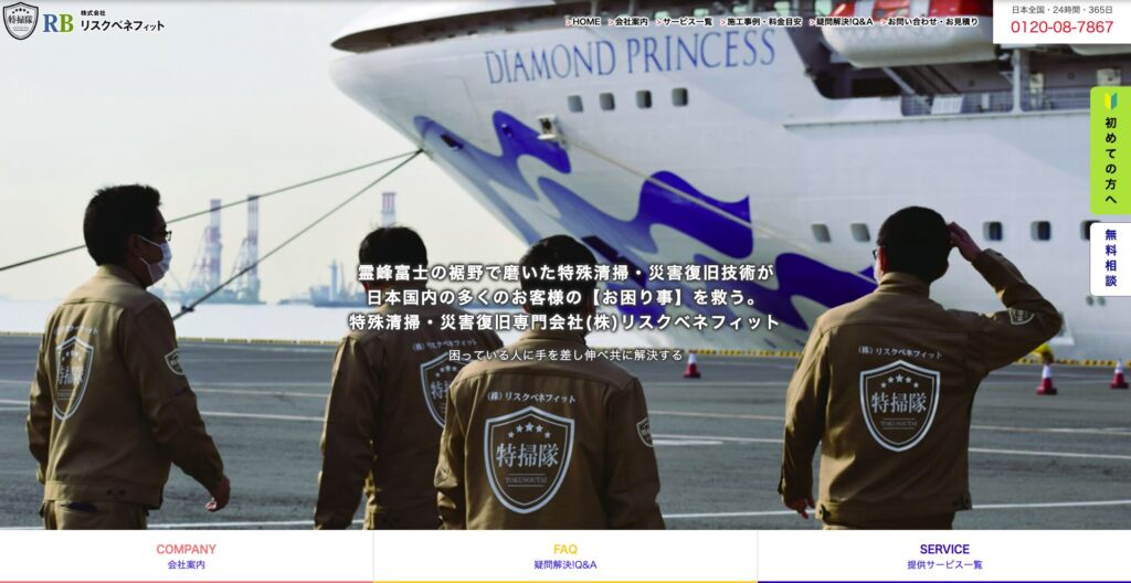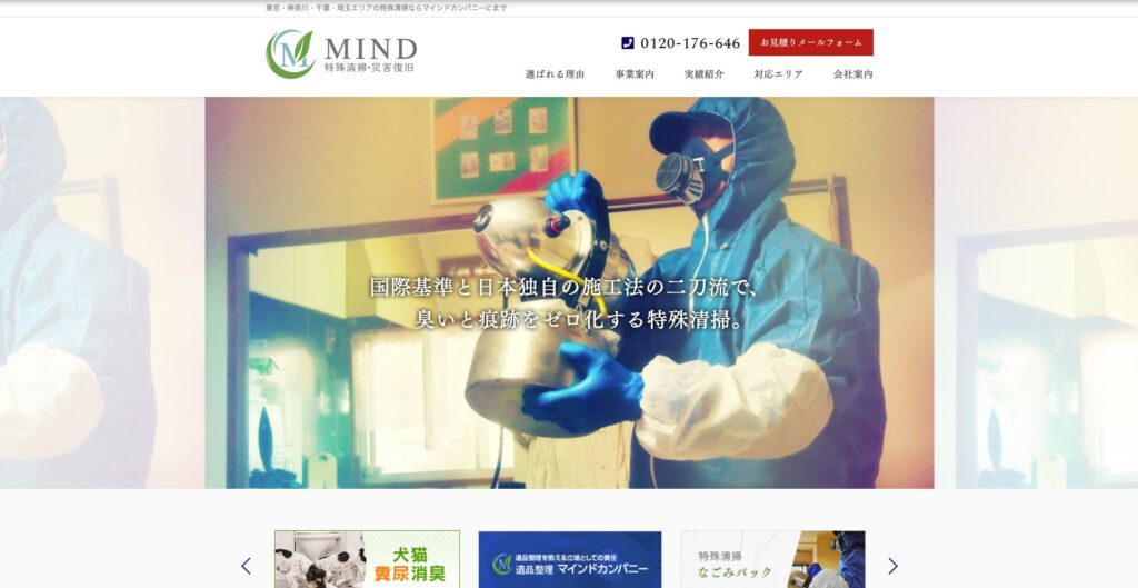 孤独死や火災現場などの特殊な清掃に特化した、「技術力」を売りにしたサイトです。