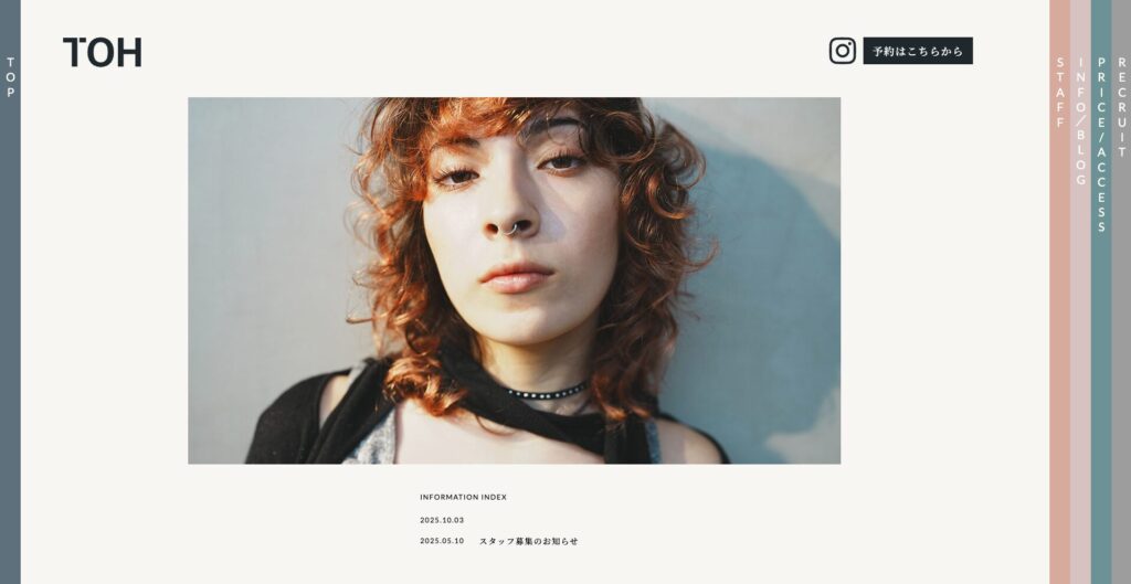 原宿・神宮前エリアにあるTOHのサイトは、トップページを開いた瞬間に「何が必要か」だけを提示する、非常に潔い構成です。