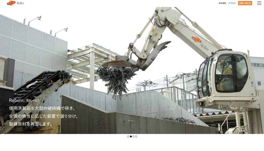 株式会社リーテムのウェブサイトは、「都市鉱山(Urban Mining)」という概念を視覚化するため、メタリックで先進的なイメージ画像が多く用いられている。