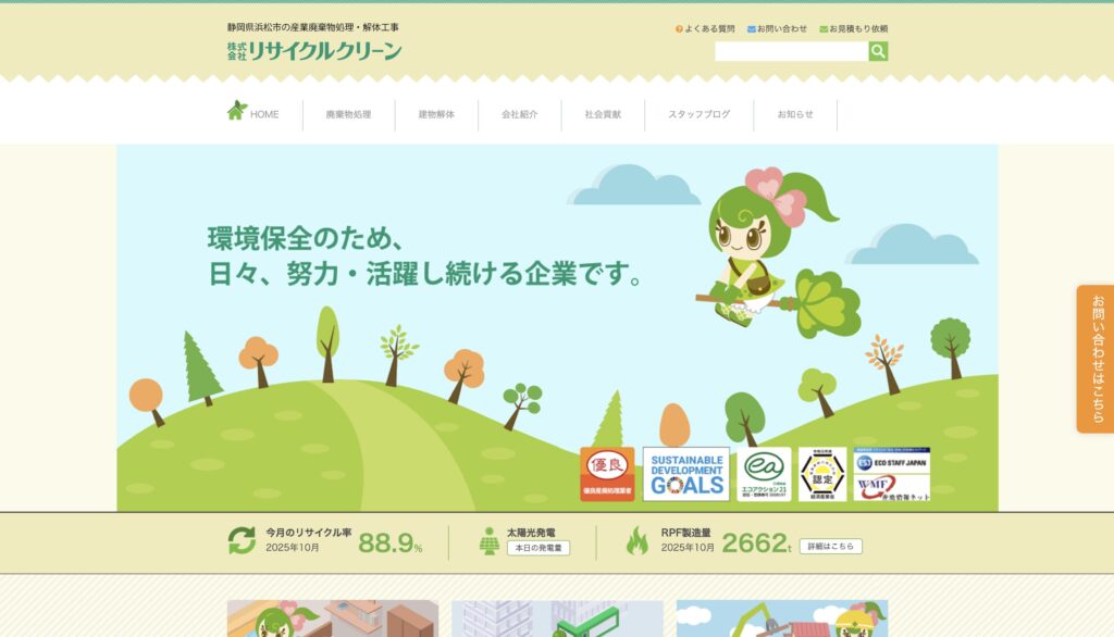 株式会社リサイクルクリーンのウェブサイトは、まさに「実証主義」のデザインと言える。