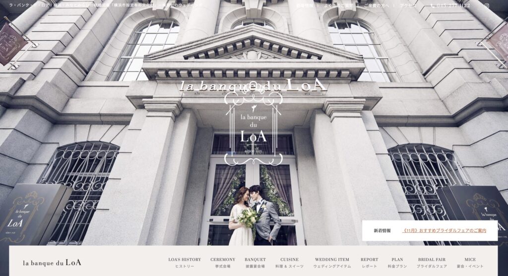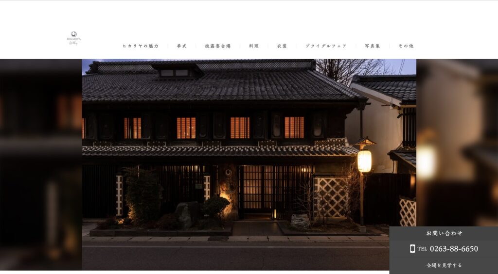縁結びの神様として有名な神社の隣にある式場らしく、和の厳かさと伝統の重みをしっかりと感じさせるサイトです。