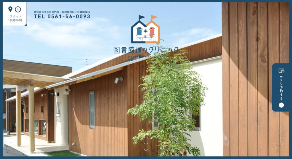 「発熱外来」や「ネット予約」など、患者が今一番求めている情報へのボタンが目立つように配置されており、機能性が高いです。