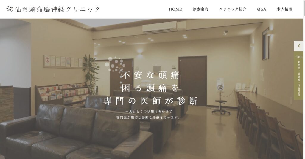 「しびれ」と「頭痛」という具体的な症状を医院名に入れ、患者が自分事として捉えやすい工夫がされています。