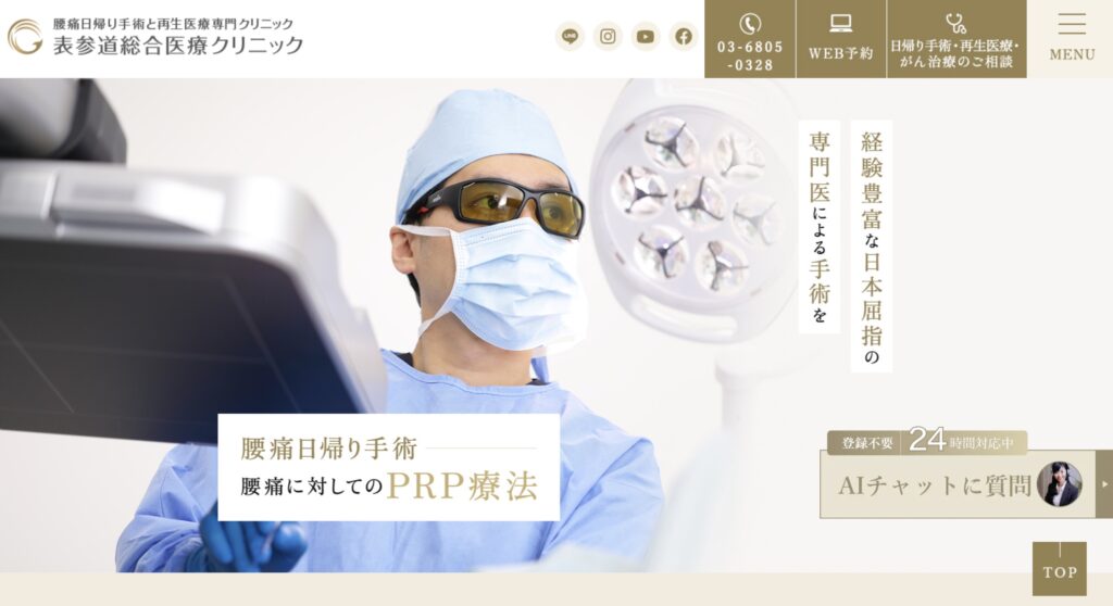 椎間板ヘルニアの日帰り手術や再生医療といった先進的な治療を、分かりやすい図解や動画で紹介しています。