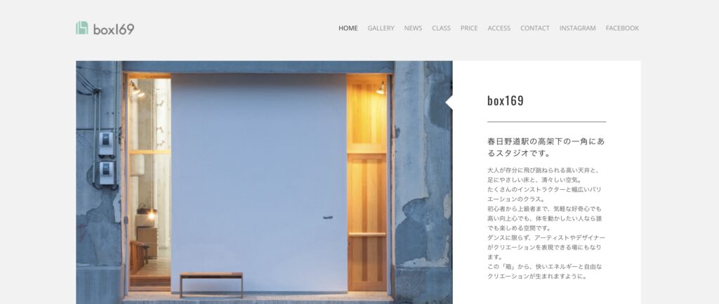 独創的なスタジオ外観をメインビジュアルに据え、空間そのものの魅力を強力なコンテンツとして活用している。