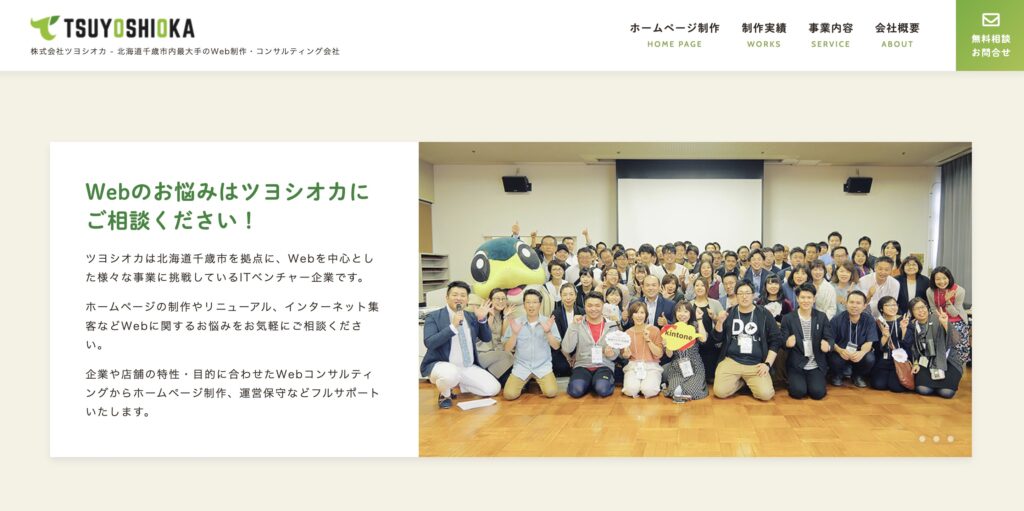 海道恵庭市に拠点を置くホームページ制作会社で、千歳近郊の中小企業にユニット型のチーム制でサービスを提供しています。