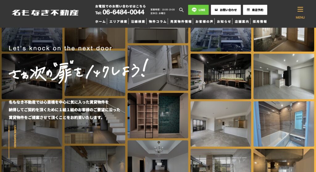 物件を並べるだけでなく、スタッフの顔が見える構成や相談しやすさを強調する配置により、デジタルなのに「人の温もり」を感じさせる、対面接客のようなサイトになっています。
