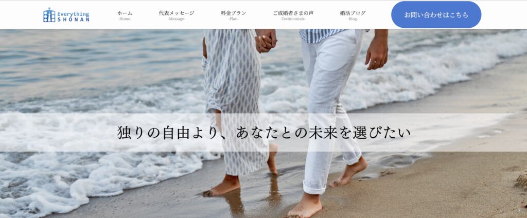 「湘南」という地域ブランドと、代表者の人生経験を強力なフックにしたサイトです。