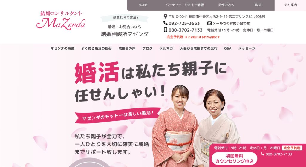 地域情報にも強く、福岡での婚活を考えるユーザーに対し、具体的で現実的な解を提示する情報密度の高さが魅力です。