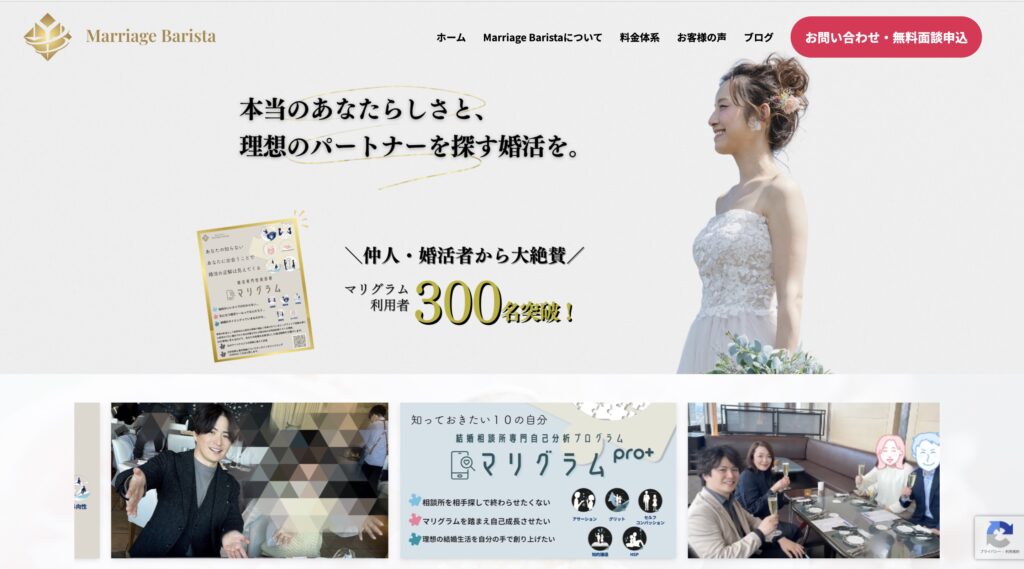 性格診断「マリグラム」などの独自ツールを前面に出し、感覚的な婚活ではなく、データに基づいた効率的な活動を求める層に強く刺さる設計です。