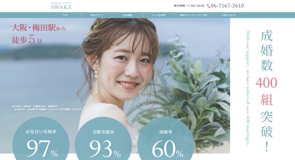 料金プランや成婚実績などのユーザーが最も知りたい情報を、隠さずクリアに表示することで信頼を獲得。