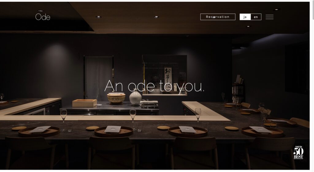 シェフのポートレートや哲学を語るページが充実しており、料理人の「顔」が見えることで、来店への安心感と期待感を高めています。