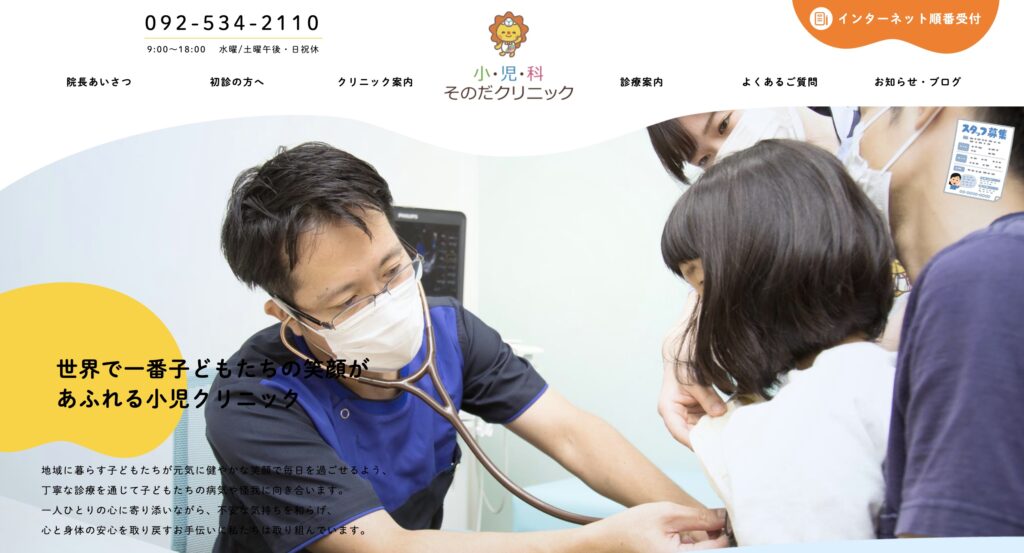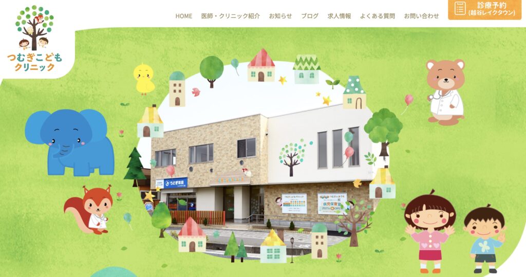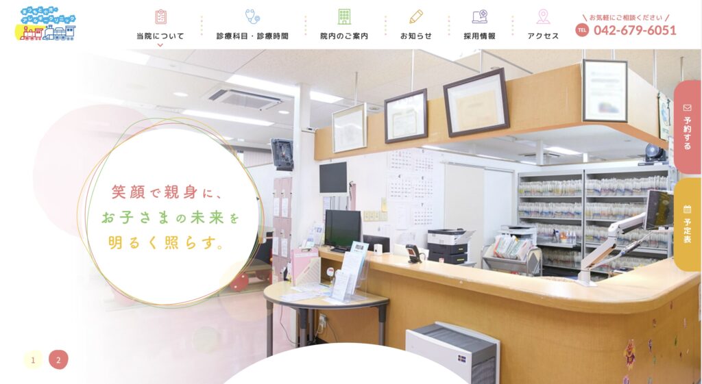「小児専門」という特化性が、ロゴやサイト全体のデザインに強く反映されています。