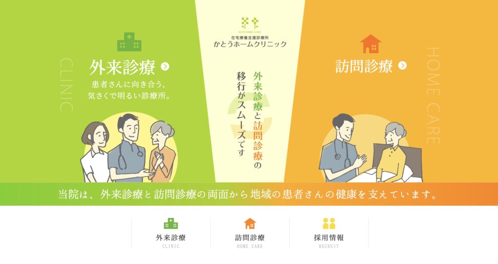 トップページを開いた瞬間、柔らかなイラストと温かい色使いが目に飛び込み、病院特有の無機質な怖さを完全に払拭しています。