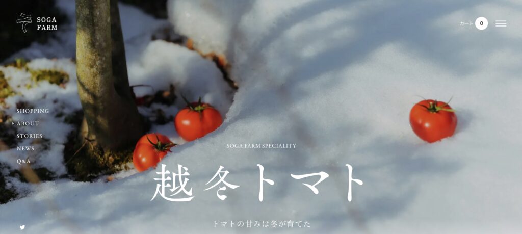 豪雪地帯である北海道真狩村の厳しい自然環境と、そこで育つニンジンの鮮やかなオレンジ色の対比(コントラスト)が美しいサイトです。