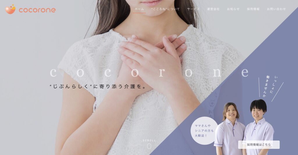 ウェブデザイン事業と訪問介護事業の両方を行うユニークな企業であり、自社サイト自体がデザイン事業の実績として機能しています。