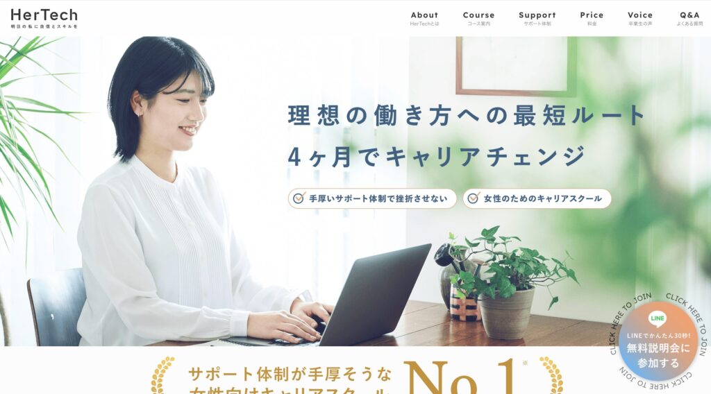 女性誌のような洗練されたデザインで、ターゲットである「働き方を変えたい女性」の憧れを刺激します。