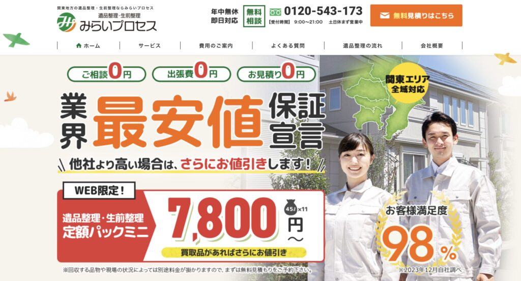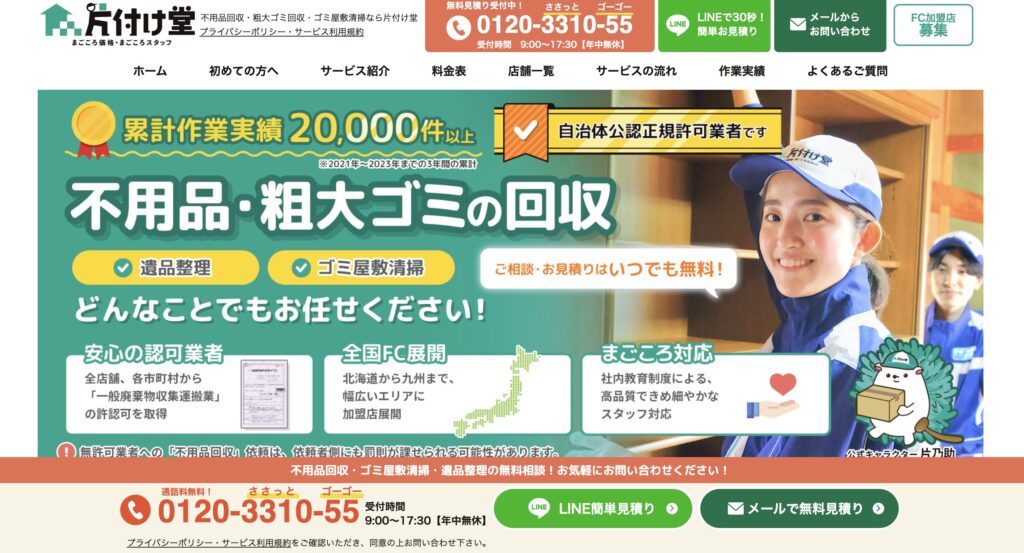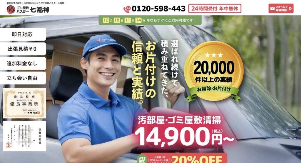 「ゴミ屋敷」という深刻な悩みを抱える人に対し、笑顔で対応してくれる姿を全面に出すことで「恥ずかしくない」「怖くない」と心理的なハードルを極限まで下げています。