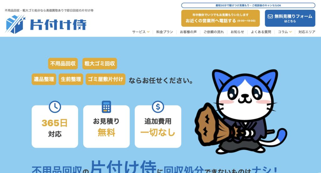 「片付け侍」という一度聞いたら忘れないユニークな屋号で、他社との差別化を図っています。