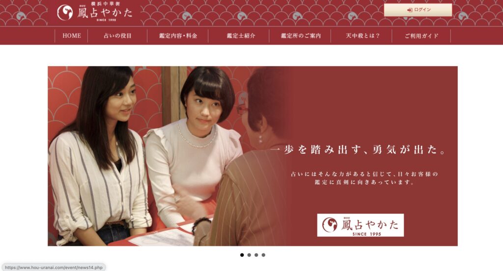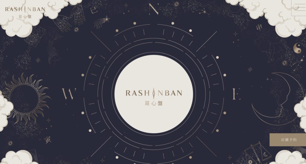 中国の伝統的な色彩や模様を取り入れ、「手相」「算命学」といった東洋占術の専門性を視覚的に訴求しています。