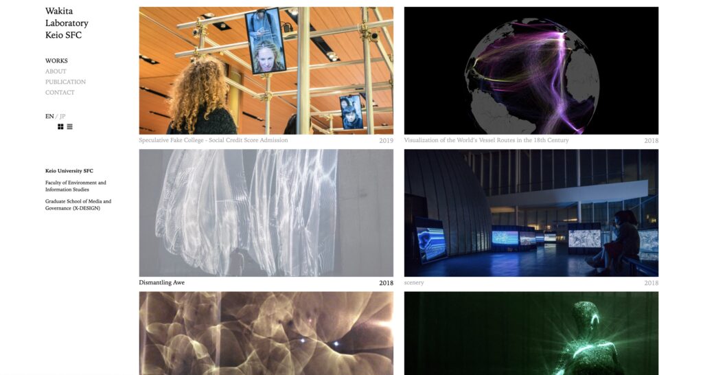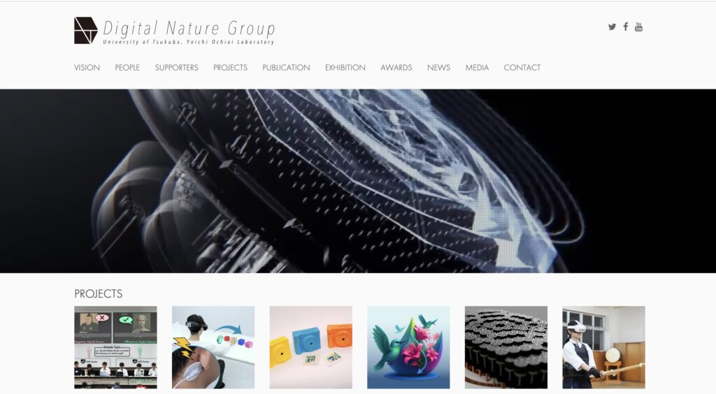 黒を基調とした画面デザインは、研究対象である光や映像の美しさを際立たせ、訪問者を瞬時に研究室独自の異世界へと引き込みます。