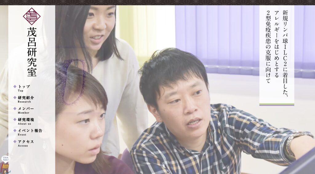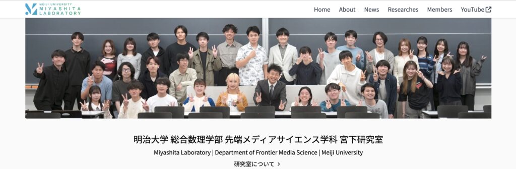 メニューもシンプルで、専門家でない訪問者や学生に対しても、研究室の魅力がストレートに伝わる設計です。