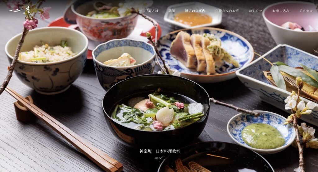 「プロの技を学ぶ」というコンセプトが明確で、遊びではなく本気で日本料理を極めたい層に向けて、信頼と憧れを醸成する重厚な作りになっています。