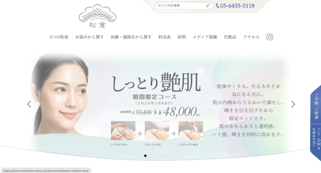 「真面目な美容医療」というコンセプト通り、奇をてらわない誠実なデザインが特徴です。