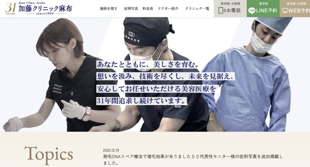 手術の技術力に定評があるクリニックらしく、詳細な医学的解説も充実しており、見た目の豪華さと情報の深さが両立しています。