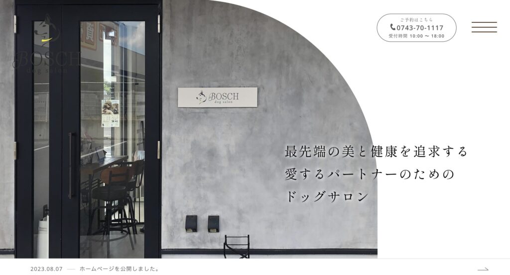 一般的なドッグサロンが持つ「ふわふわ・可愛い」イメージとは異なり、「規律」「トレーニング」「パートナー」といった力強いメッセージを感じさせます。